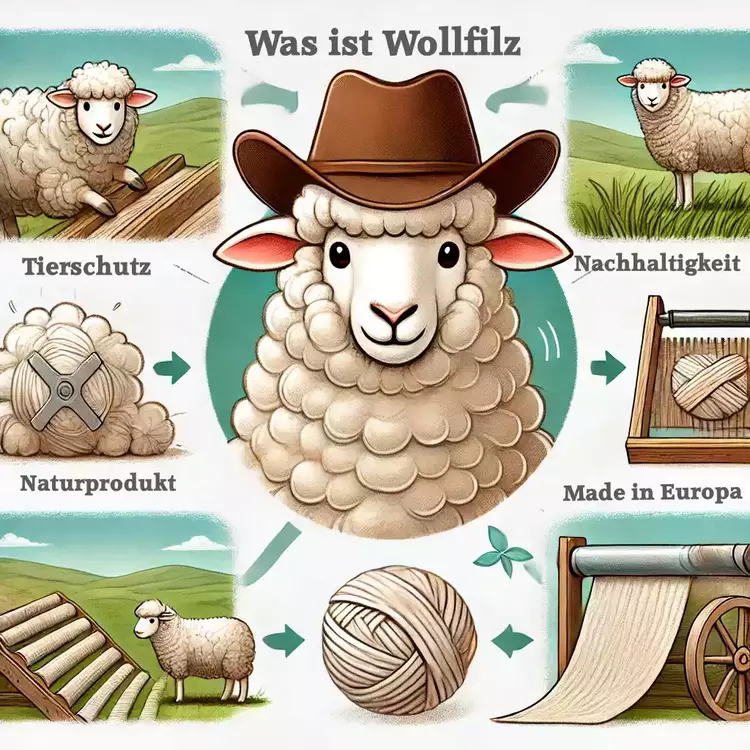 Unsere Wollfilzhüte werden aus Wolle europäischer Schafe gefertigt. Dies gewährleistet nicht nur eine hohe Qualität der Wolle, sondern auch, dass die Tiere unter strengen Tierschutzbestimmungen gehalten werden.